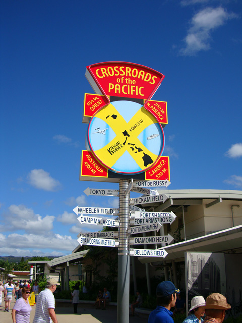 Pearl Harbor is the crossroads of the Pacific. Look, there's even an arrow pointing my way home to DC.