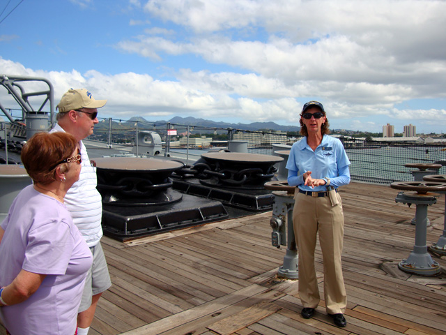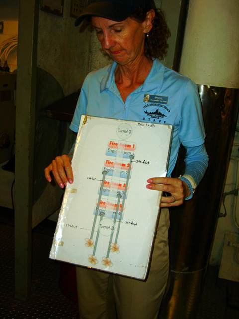 We paid a little extra to take the special "Explorers Tour" of the battleship, which took us to parts of the Missouri that few get to see. That's our guide.