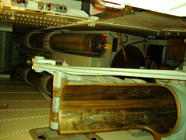Part of the mechanism for loading the shells.