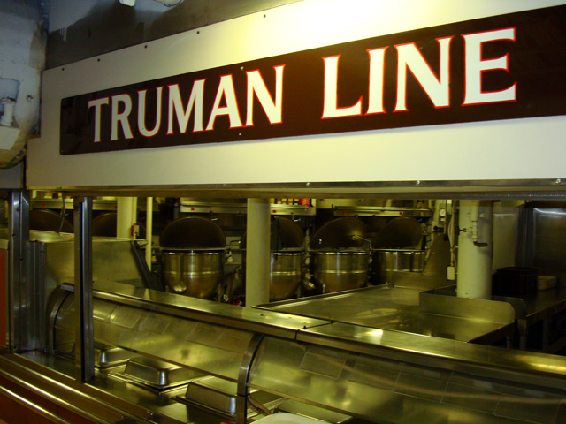 Well it is the Missouri and Margaret did christen the ship, so you might expect to see some tributes to President Harry S. This is the galley.