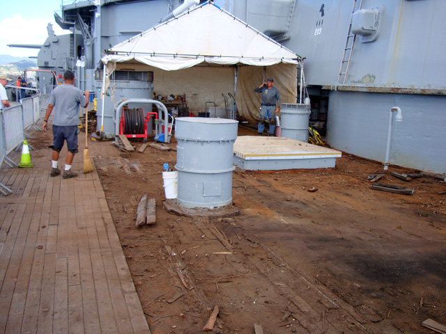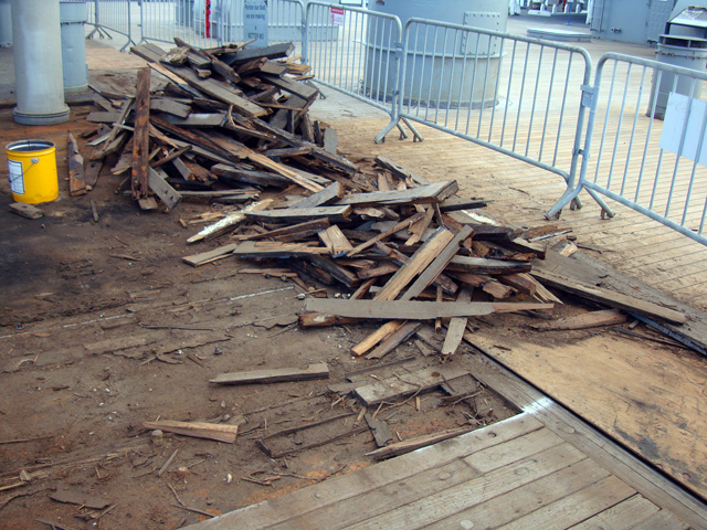 Look, they're replacing the ship's teak planking!