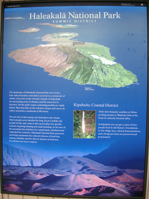So what is this place exactly? The name Haleakalā is Hawaiian for "house of the sun." According to a local legend, the demigod Maui imprisoned the sun here in order to lengthen the day. The park features the dormant Haleakalā (East Maui) Volcano, which last erupted around 1490. The park is divided into two distinct sections: the summit area and the coastal Kipahulu area. The two sections of the park average 1,450,000 visitors per year.