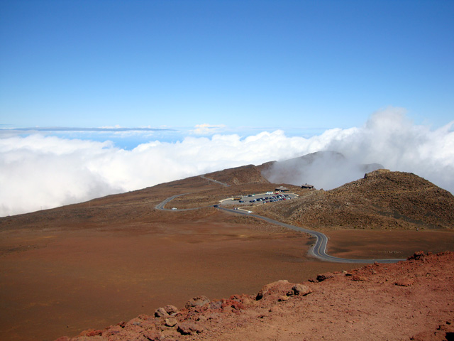 And there's the Visitor Center back there by the crater, all above the clouds. This is just an amazing place. |