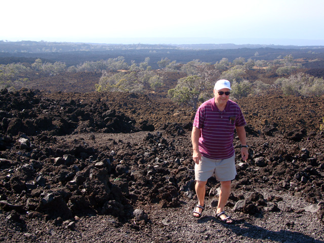 Doug tries to walk through the A'a without falling down.