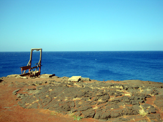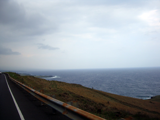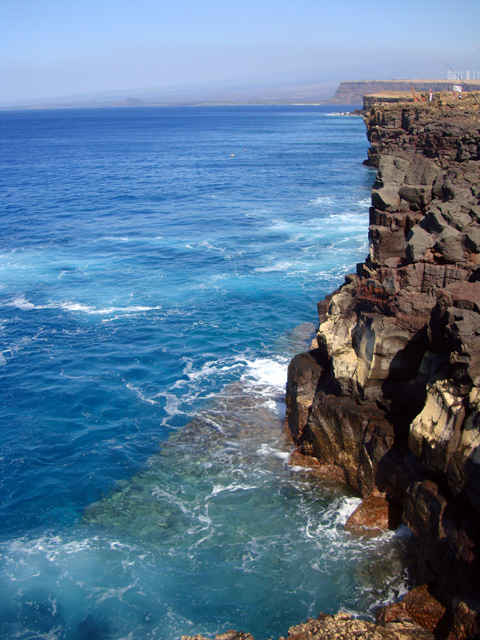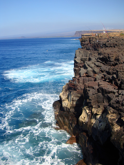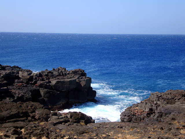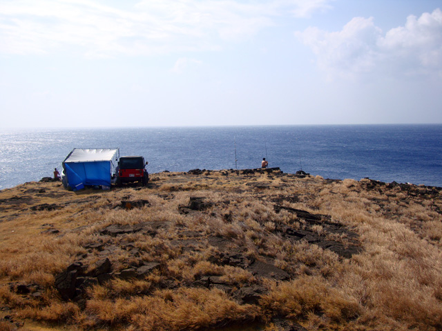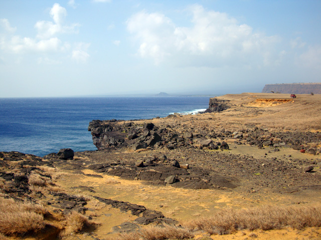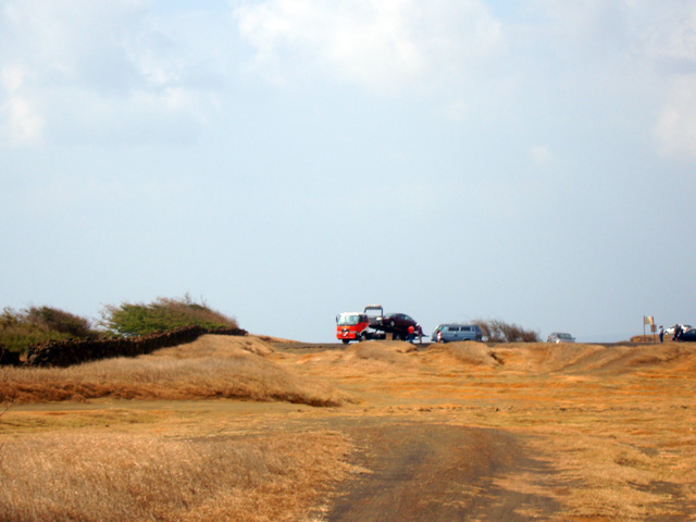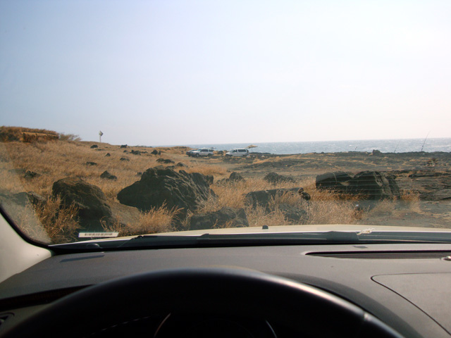 Notice that the big island really is big, but there aren't many roads. Basically there's one big loop all around the place that skirts the ocean, and one "saddle road" across the middle. Sure, there are other little roads here and there, but basically that's it. But we're not going to let the lack of roads stop us, no-sirree. See that north/south road right there at the bottom of the map, the one that goes straight to the island's southernmost point? The one that looks like it meanders off into the most out-of-the-way spot on the entire island? Well, we're going to drive down that road, right down to the place they call "South Point." They call it that because it's the southernmost spot in all the 50 United States.