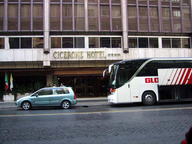 Here are Sid and Margia enjoying some gelati, the first of many. Gelato is Italian ice cream, and it's just wonderful. It's better than our ice cream, and I don't understand why. Maybe Italian cows are more talented than American cows. I dunno. But I tried some gelato at Union Station here in Washington, DC, the other day, and I'm telling you it just wasn't the same. Our first hotel. The Cicerone, on Via Cicerone. Easy to remember. |