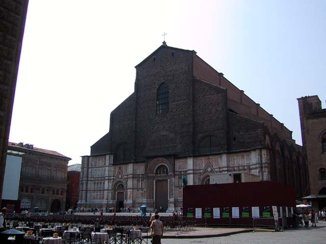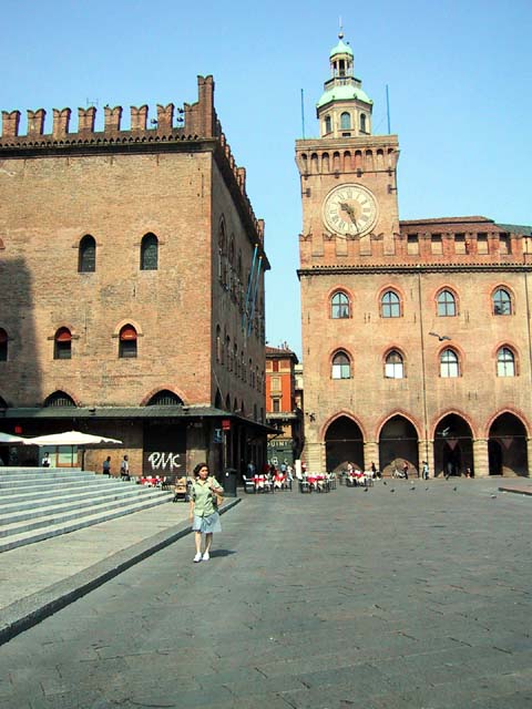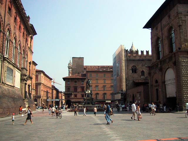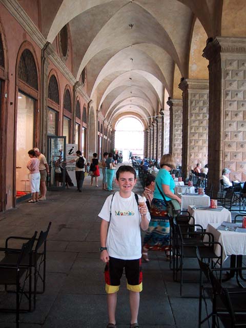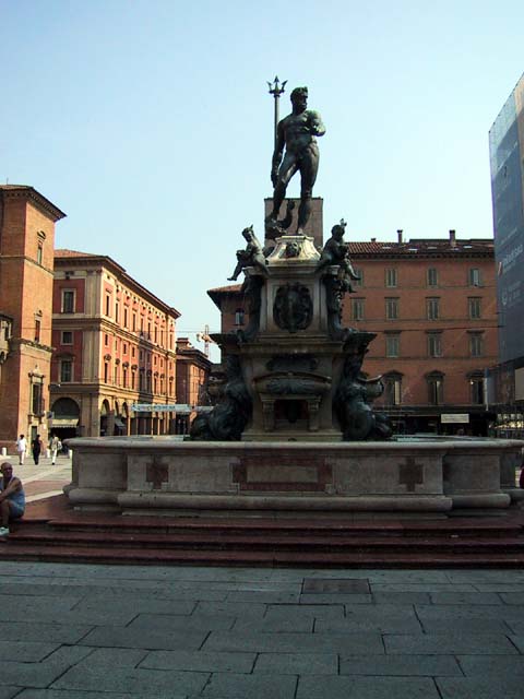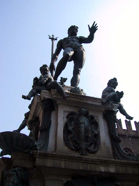 Our first stop on the drive from Florence to Venice was Bologna, which is NOT pronounced "baloney." This is Neptune's Fountain, and I found it ... um ... interesting. Yes, the water is squirting from where it appears to be squirting. There's Neptune himself. At least he's not squirting. I kept my bearings in Bologna by referencing Neptune's posterior. And this is Sam, esteemed winner of the 2003 Gelato Trophy for Rescuing Bill Anderson's Room Key from a Swimming Pool. He's standing in an arcade, which is a feature of Bolognese architecture. All the downtown streets seem to have arcades. This was Sunday morning, and there wasn't much going on in downtown Bologna. They were setting up things for some sort of event in the town square. There were seats. There was a projection screen. There were even lots of old men talking to each other. But there wasn't much going on. I wonder if, in Italy, Oscar Meyer has a way with b-o-l-o-g-n-a? |