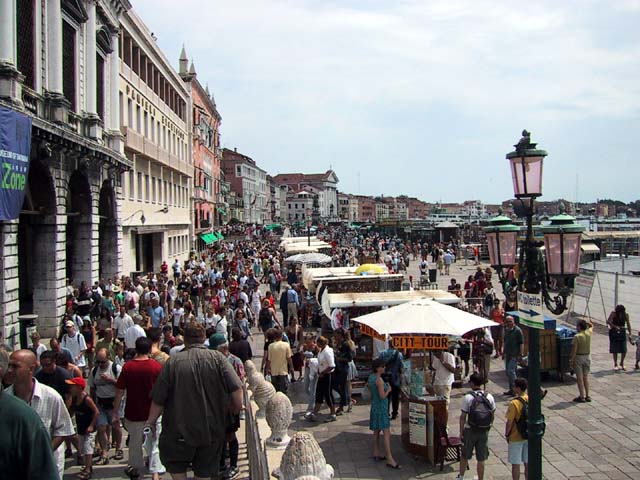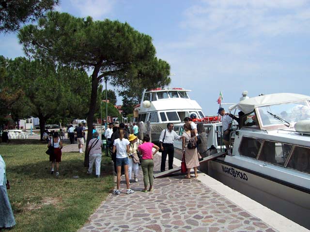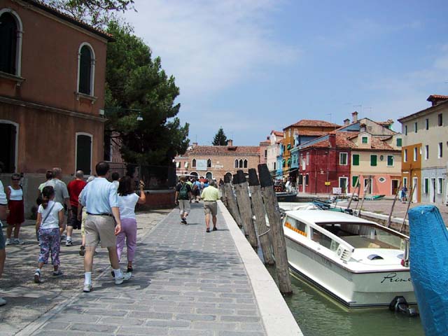 The big excursion of the day was the optional trip to Burano, a nearby island noted for its colorful houses and its Venetian lace. This time Sid and Margia had no interest in the tour, so Claudia and I went. This is the route we walked to the boat, along the Venetian waterfront. Have I mentioned there are a lot of tourists in Venice?