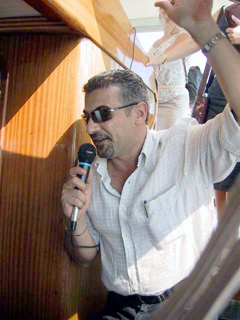Big mistake. See that lady on the far right with the grin on her face? She's the British tour guide who suggested he use the phrase "Bits and Pieces." And she overheard me talking to Daniele. And then she grabbed Daniele's microphone out of his hand and proceeded to tell the entire boat about his embarrassing faux pas. She had everybody in stitches. It was very funny, I think even for Daniele.