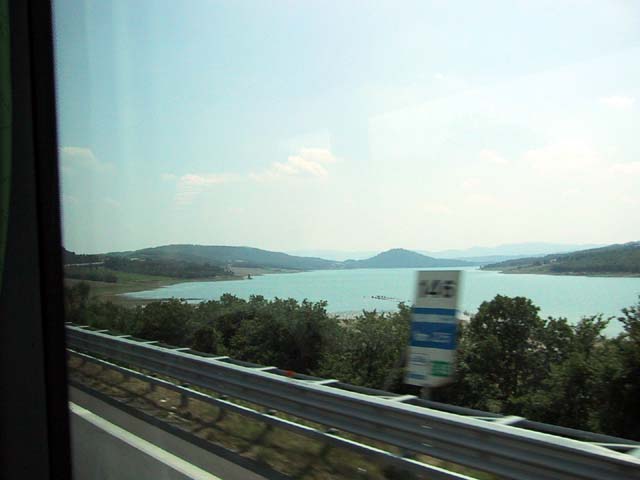 According to Daniele, this lake is formed by damming the Tiber River. Look at the shoreline. Even this big lake is drying up.