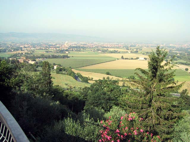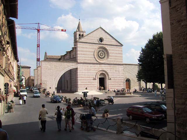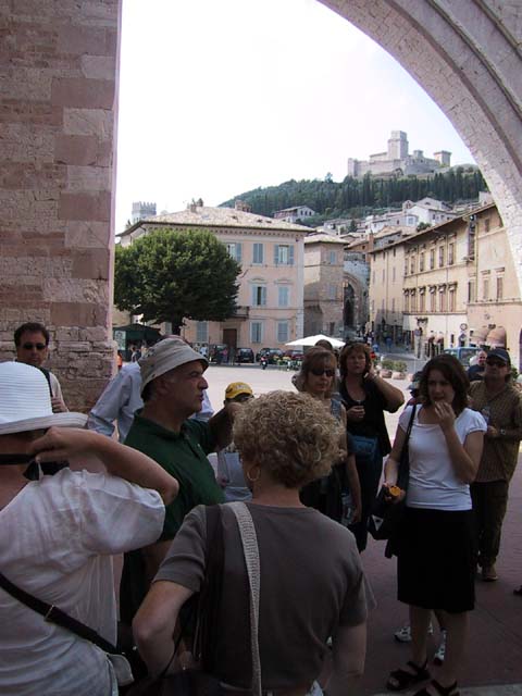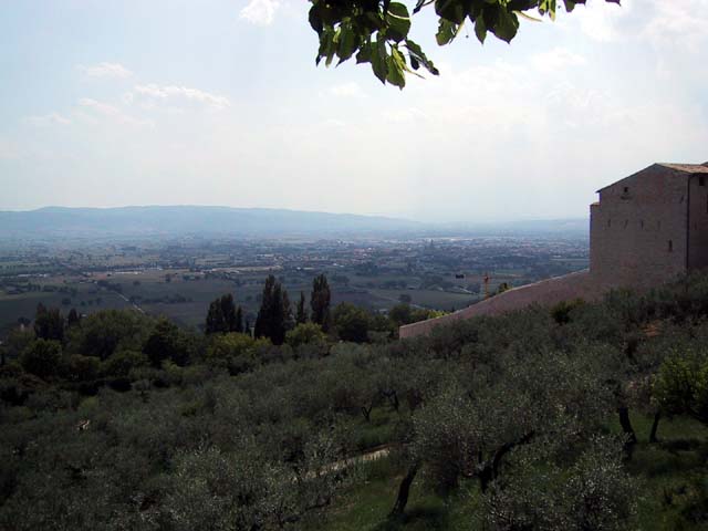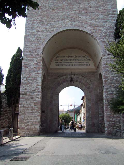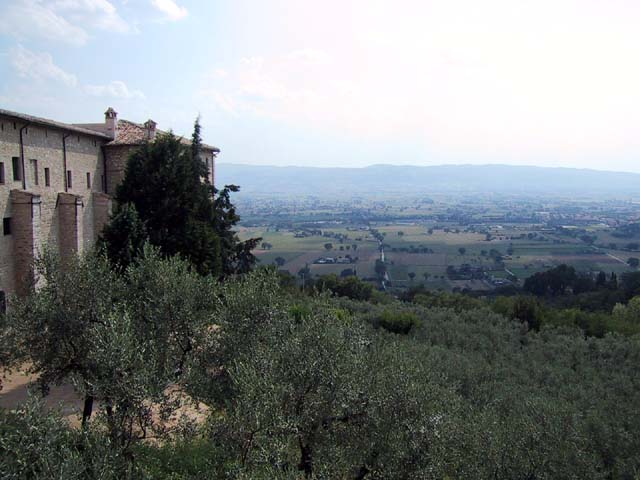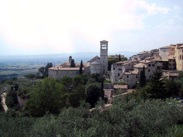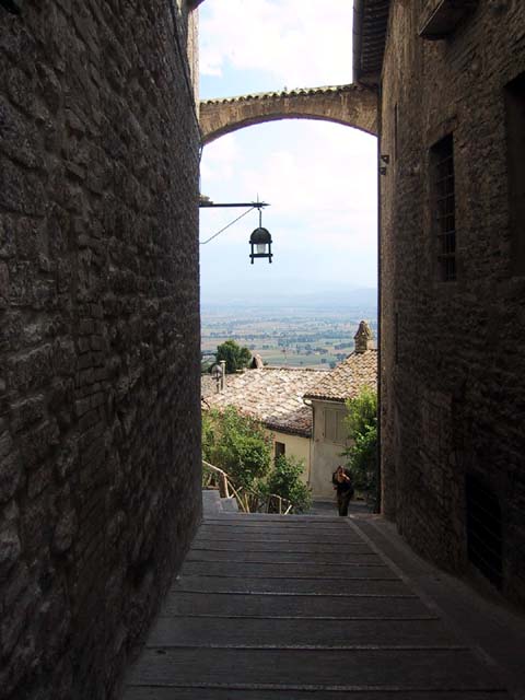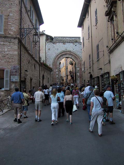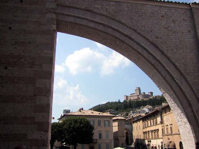 Assisi, home of St. Francis, is an ancient Etruscan city set high on a hill for a very good reason. In olden days the hills in the area were surrounded by water and swamps and mosquitoes and malaria. The Etruscans were no dummies -- they knew it would be easier to stay healthy if they built Assisi high above the swamps. In later years, of course, as the city grew, it expanded down the hill. So as we walked up the hill into the city, we walked back in time.