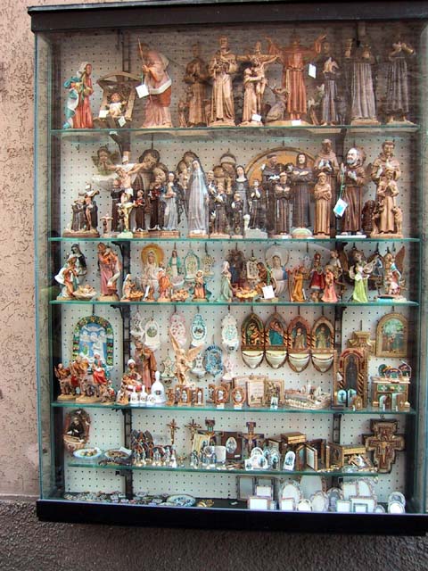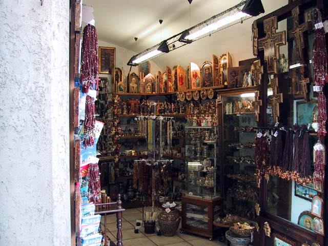 There were lots of religious souvenir shops along the way. Pilgrims come from all over the world to buy these tacky little items.