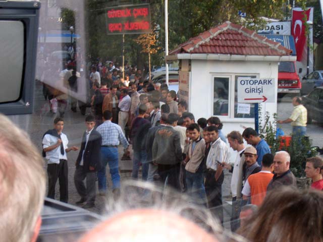 Now we're driving back to the hotel. Tomorrow is the first day of Ramadan. These guys have queued up for free food, according to Mete.