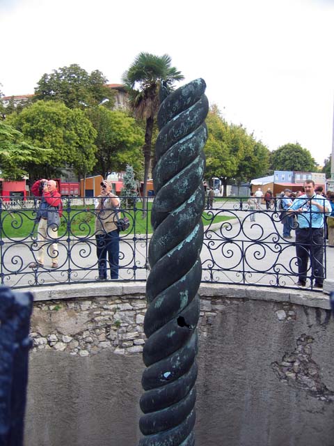 Next to the Egyptian obelisk is the Serpentine Column, believed to date from 479 B.C., which was shipped here from Delphi.
