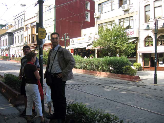 This may have been the best lunch of the trip, even if I didn't have much time to eat because I'd been touring the Basilica Cistern. There's Mete waiting with Claude and Melissa for folks to come out of those restaurants over there across the street.