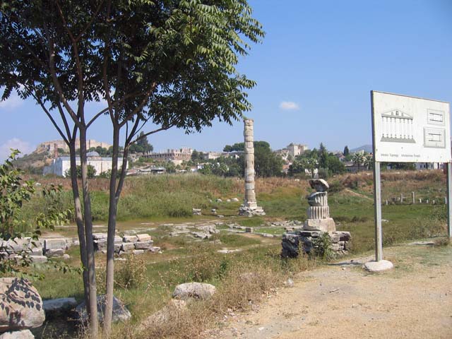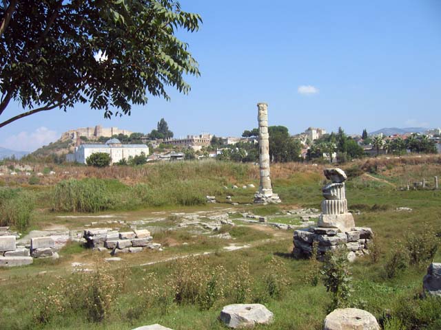 After the buying spree at the leather outlet, we backtracked to Ephesus to see the site of the famous Temple of Artemis (Artemis for the Greeks, Diana, for the Romans). There's not much left. The Turks have stacked up some fragments of columns, but that's about it.