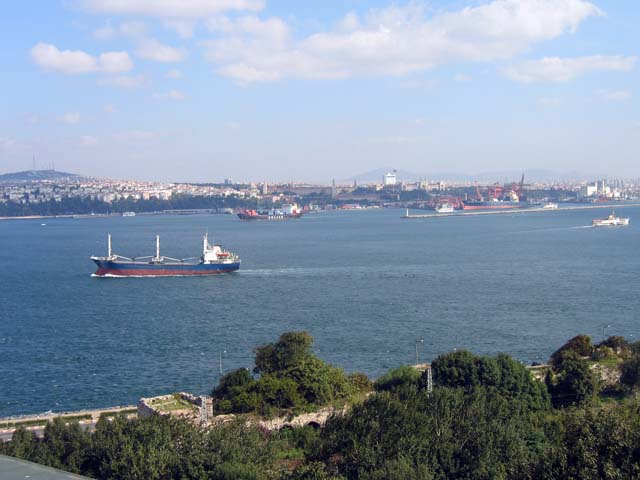 Shipping on the Bosphorus is active 24 hours a day, I think. There are ships going every which way.