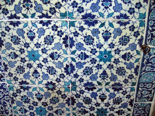 It has exquisite blue and white tilework.